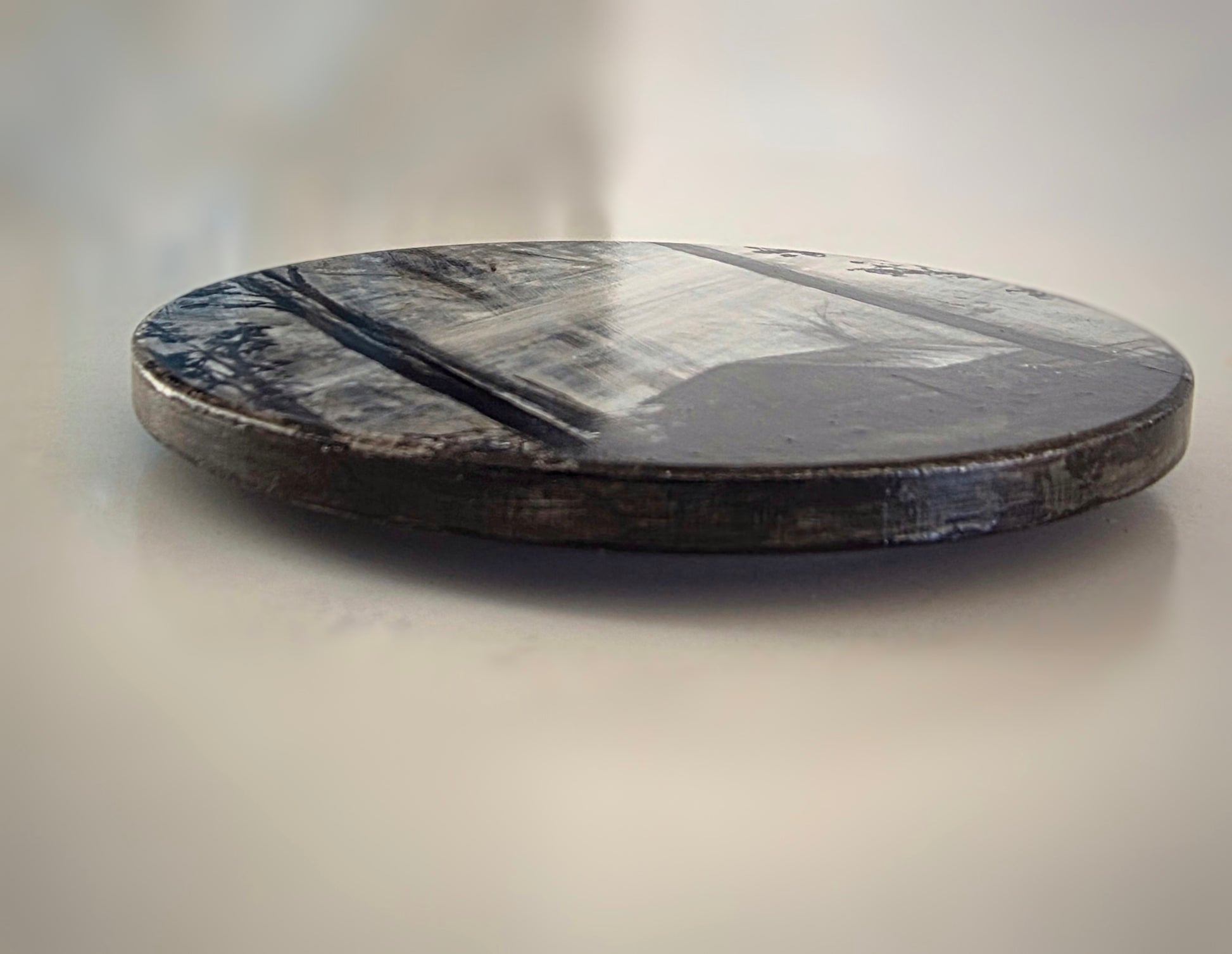 Each coaster sits slightly elevated, creating a subtle floating effect as it rests on the table. The back is felt-lined and signed, making it both functional and display-worthy.