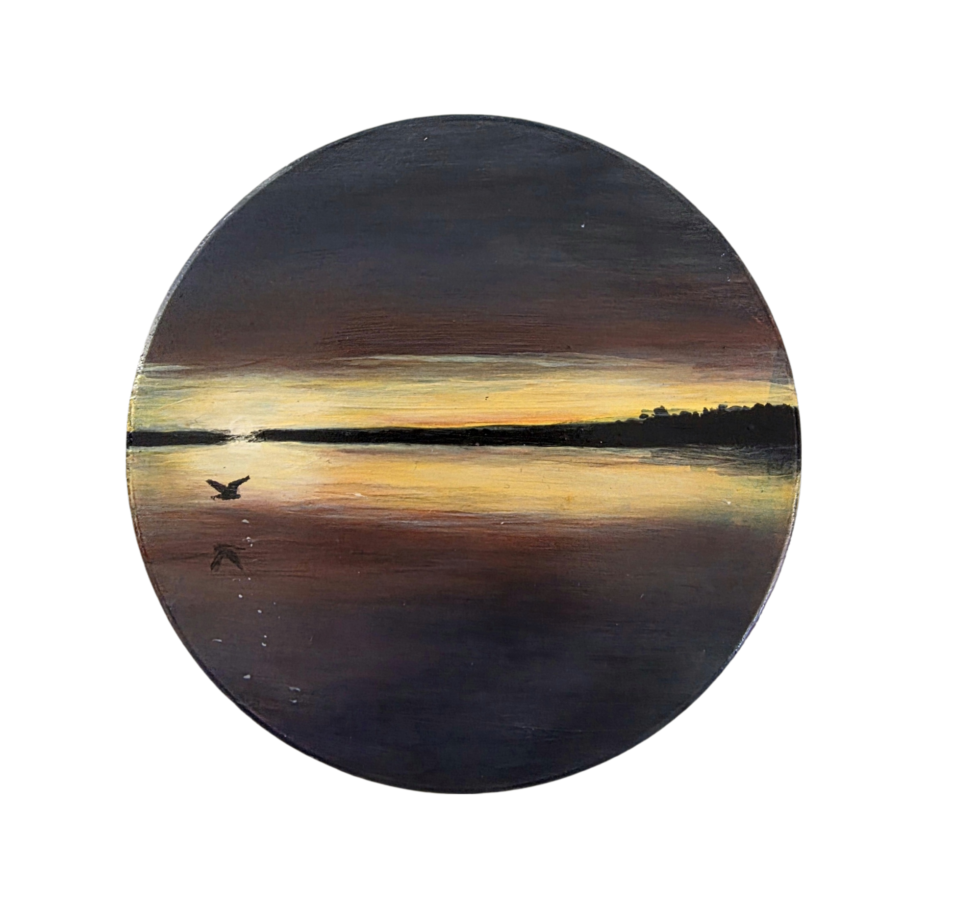 Inspired by the calm beauty of Mars Landing, Victoria, this piece captures the soft glow of sunset mirrored across still water — a quiet moment of reflection and freedom.